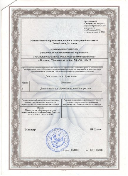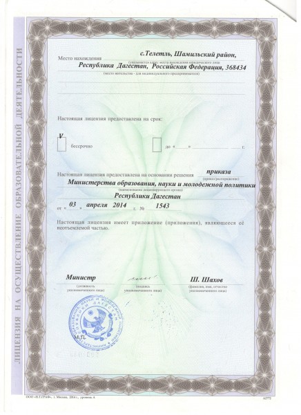 | Адрес местонахождения образовательной организации* | 368434, республика Дагестан, Шамильский район, село Телетль |